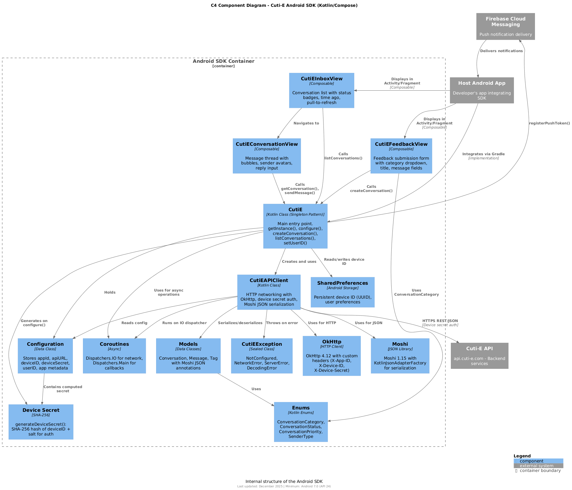 | Android SDK | puml | PNG / SVG | CutiE, APIClient, Compose Views, Models, OkHttp |