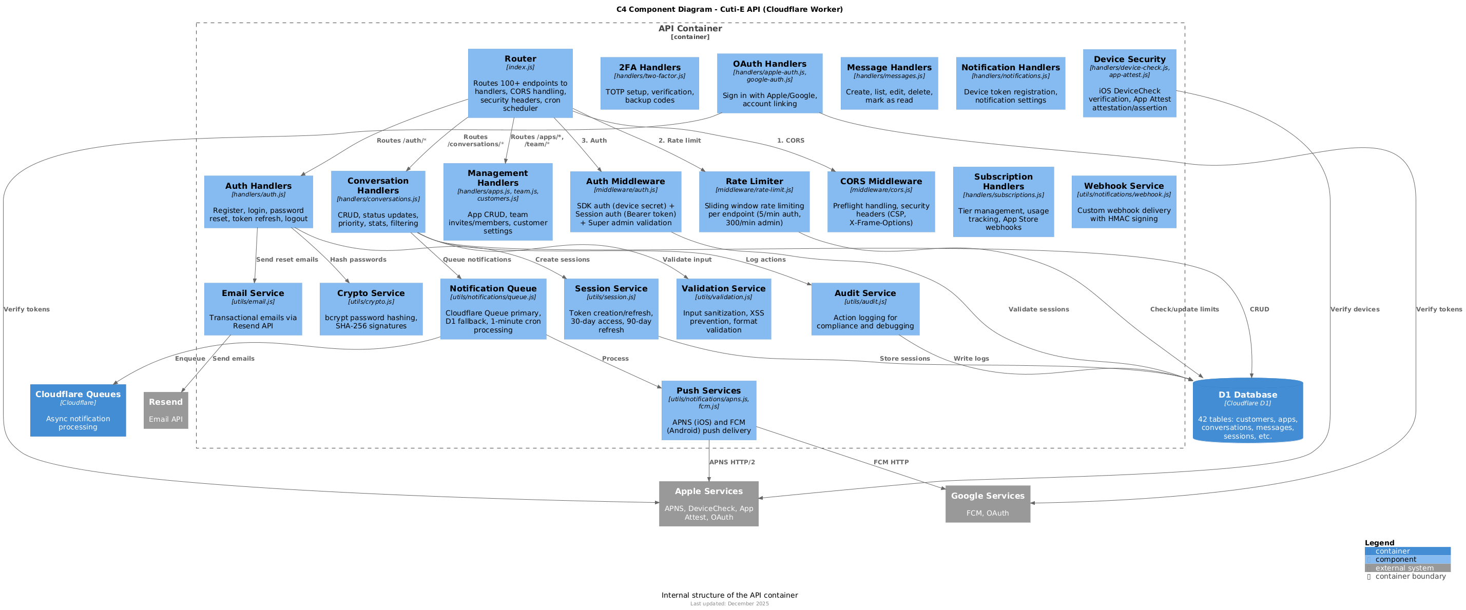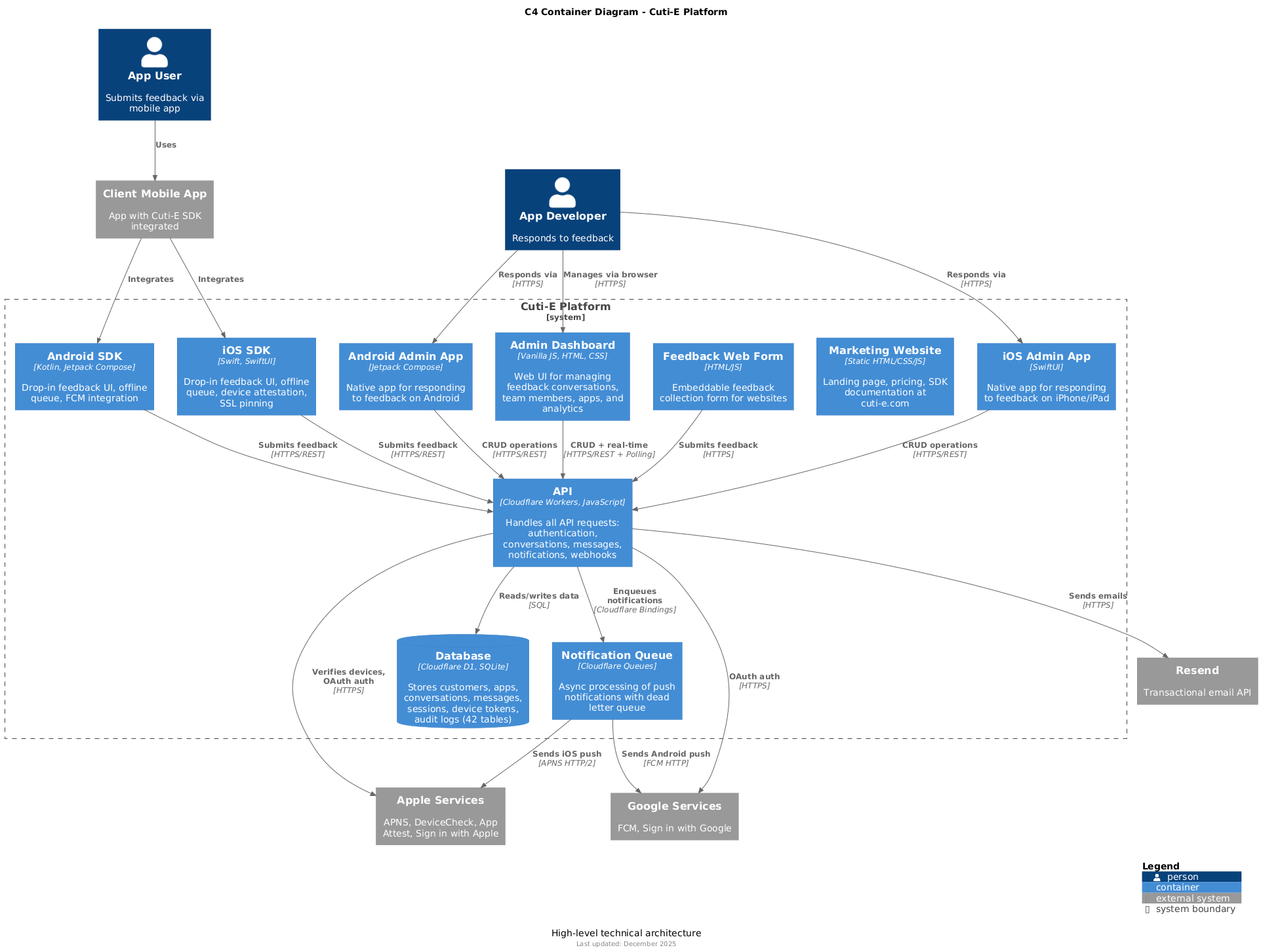 This directory contains C4 model architecture diagrams for the Cuti-E platform.