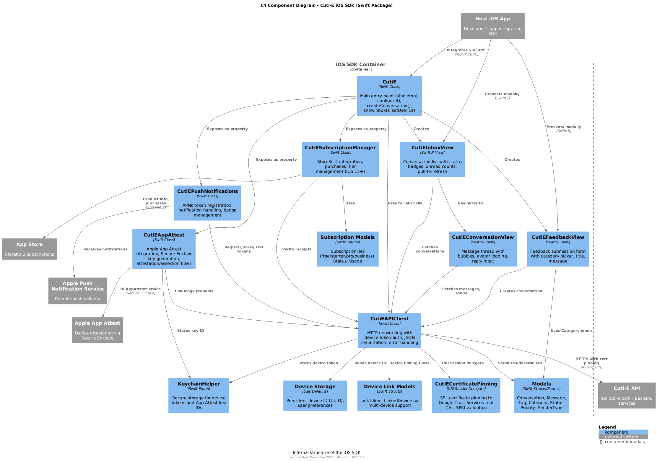 | iOS SDK | puml | PNG / SVG | CutiE, APIClient, AppAttest, PushNotifications, Views |